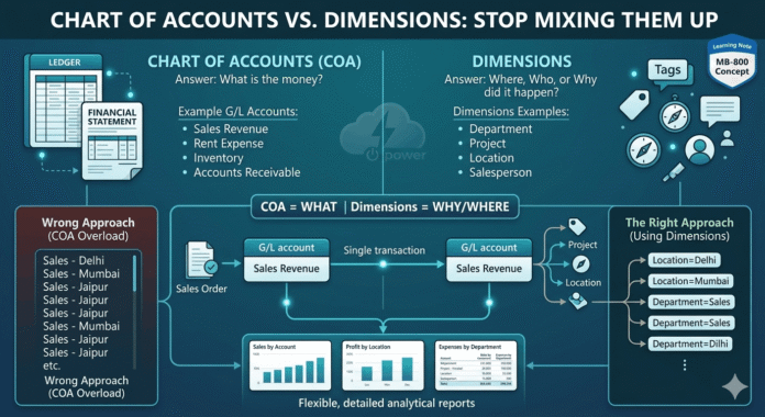 One of the most common points of confusion when learning ERP accountingโespecially in Dynamics 365 Business Centralโis the difference between Chart of Accounts (COA) and Dimensions.